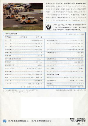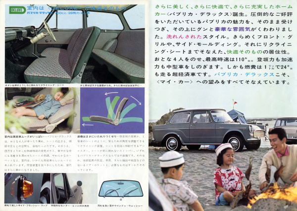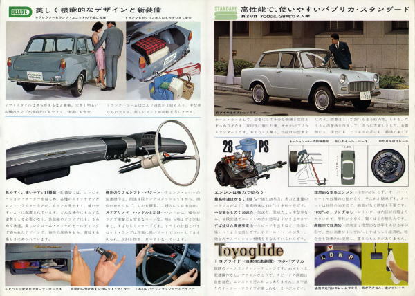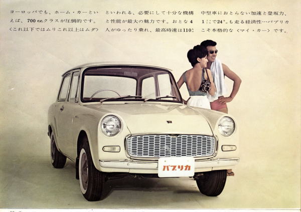 1961年に発売されたトヨタ・パブリカ(UP10型)です。当時の通産省から出されていた「国民車構想」の理念に基づきトヨタが一生懸命開発した車ですが、カローラが現代に至るまで人気車種であり続けているのに対してこの車はあまりパッとしませんでしたね。実用性の観点から移動手段の道具としてはとてもすばらしいものだったと思うのですが、やっぱり「くるま」たるもの、所有者の心を満たすプラスアルファの何かが必要だったのでしょう。いくら実用性が優れているといってもハイブリット仕様のプロボックスに誰もが乗っている世界なんて想像もしたくないですね。