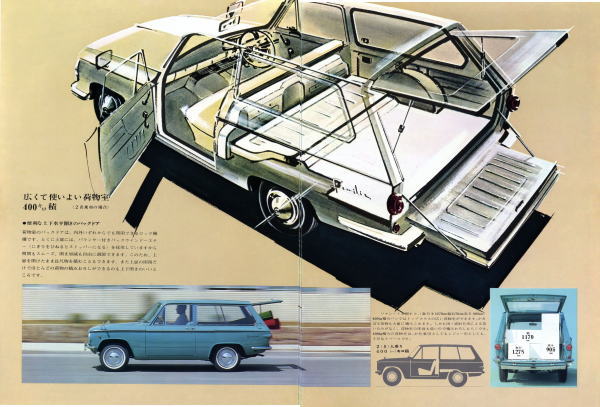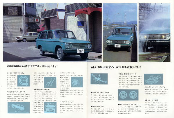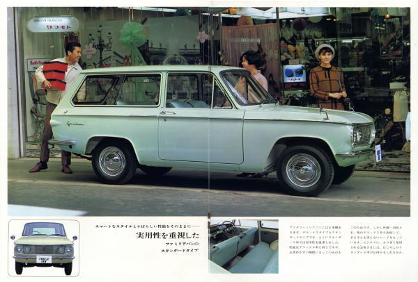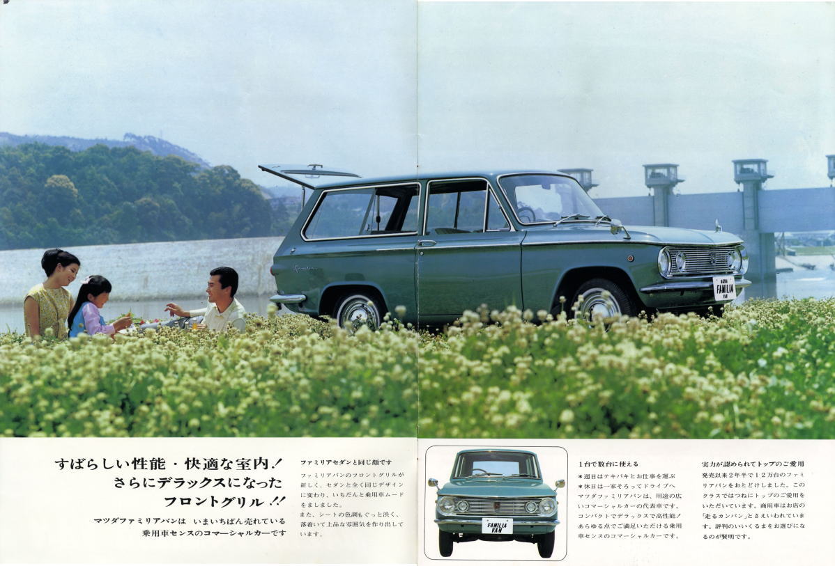 1963年に登場したマツダのファミリアバン(BSAV型)です。軽自動車メーカーだったマツダが初めて世に送り出した小型自動車がこのファミリアバン。最初にバンが出て、それからワゴン、セダンが発売されるというのもこの時代ならでは。現代のアクセラ・スポーツの先祖ともいえますが、40年の進歩というのはすごいものですね。