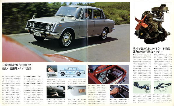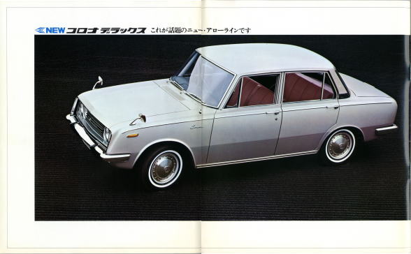 1964年にトヨタから発売された3代目コロナ(T40/50型)です。日産ブルーバードとの販売競争は『BC戦争』とも呼ばれ、カローラ登場前では国内販売台数1位となるほどのベストセラーカーでした。アローラインのデザインも特徴的でしたが、ナンバープレートを倒して給油するのも特徴的でしたね。
