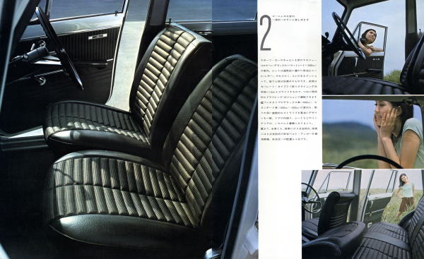 あくまでも商用車のバンなのですが、どう考えても洗練されたステーションワゴンのカタログです。このカタログが発行された昭和42年にはステーションワゴンと商用バンの違いなど関係なかったのでしょう。確かに格好は同じですし・・・。
