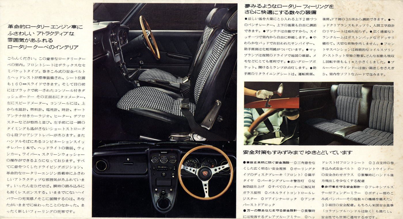 さてこのファミリア・ロータリークーペですが、このクルマは簡単に言うと2代目ファミリアの車体にあのコスモ・スポーツのエンジンを載っけたもの。エンジンは多少デチューンされているものの強力なエンジンですので、車体がエンジンに追いついていないと当時評されていました。排気量こそ491cc×2でも出力は当時の2000ccクラスだったそうです。