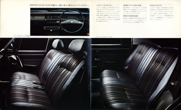 1968年にコロナとクラウンの間を埋めるべく発売されたトヨペット・コロナ・マークU(RT60型)です。「2番目」というネーミングがこれほど固有名詞として一般化した事例は珍しいといえるでしょう。当時トヨタはカローラ・コロナ・クラウン、日産はサニー・ブルーバード・セドリックというラインナップ体系を整えていました。しかしながらマイカー社会がより浸透していく高度成長期の日本国にあって、その3分類では不足と考えたのでしょう。コロナとクラウンの間に「アッパーミドル」と呼ばれる階級を設定したのでした。「アッパーミドル」、つまり「中の上」です。「コロナ・マークU」、このネーミングの妙、すばらしいです。「クラウン・ジュニア」とせずに「コロナ・マークU」、あくまでも「中の上」を目指した車です。こうしたいきさつからこの後ずっと「課長ぐるま」として日本社会に君臨する「マークU」が生まれたのでした。