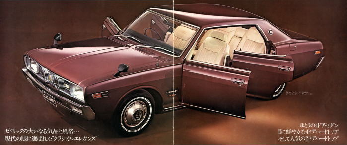 1971年に発売された日産の3代目セドリック(230型)です。セドリックが3代目の230型にモデルチェンジするにあたり、グロリアも同時に4代目となり、この代からセドリックとグロリアが共通の車体となりました。これ以後ずっとセド・グロと呼ばれることになるのです。