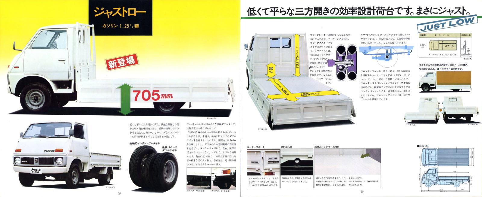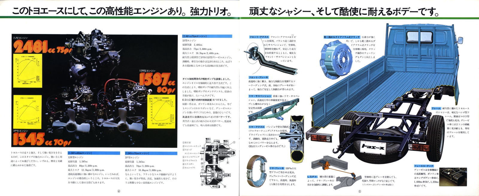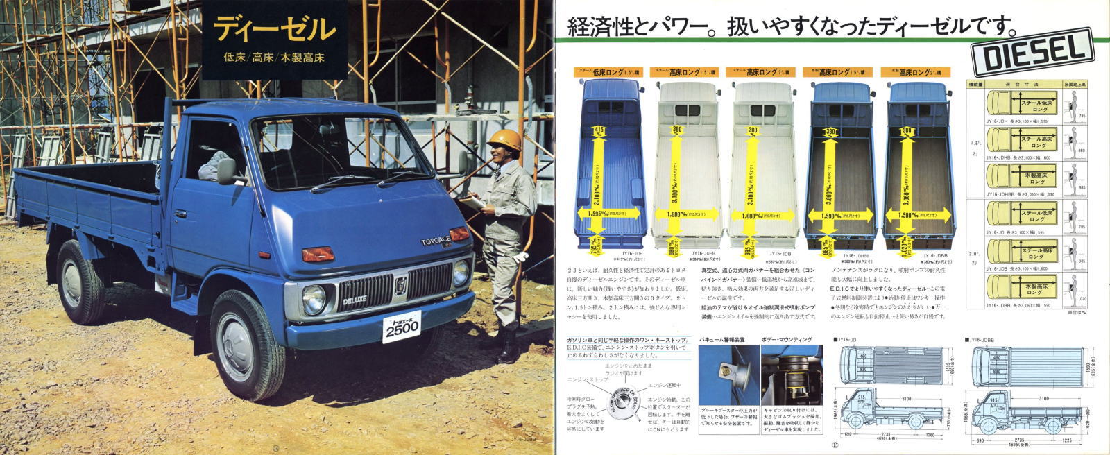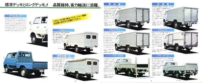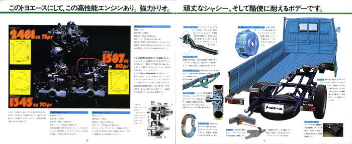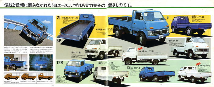 そしてさらにこの3代目ではディーゼルエンジン搭載の2トン積みまでラインナップするに至りました。「これだけ揃えればあらゆる小型トラックユーザーのニーズを満たしているから、他社のトラックも全て駆逐してやる!」とトヨタが当時考えていたのかどうかはわかりませんが、後に上位トラックであるダイナがトヨエースと共通の車体を使った姉妹車になりましたから、少なくとも身内のダイナは駆逐したことになりましたね。
