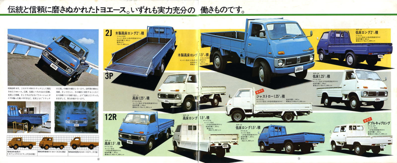 思い切った低価格戦略で三輪トラックを駆逐し、「トラックの国民車」という地位を確固たるものにしたトヨエースは、2代目の時点で1.5トン積みまで揃えたワイドレンジ展開をしており、小型トラックユーザーから絶大な人気を得ていました。