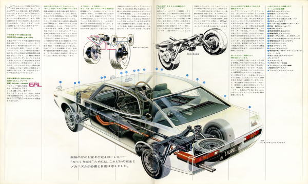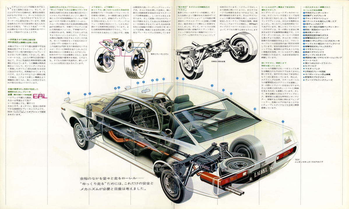 このカタログ写真を見る限り、『ブタケツ』というイメージには至らないのですが、このローレルは『ゆっくり走ろう。ゆっくり生きよう。』という本来のハイオーナーカーとしての役目を全うした後、中古マーケットへ流れてからは『賑やかにみんなで走ろう。赤信号、みんなで渡れば恐くない。』というキャッチフレーズとともに活躍する車となっていきます。