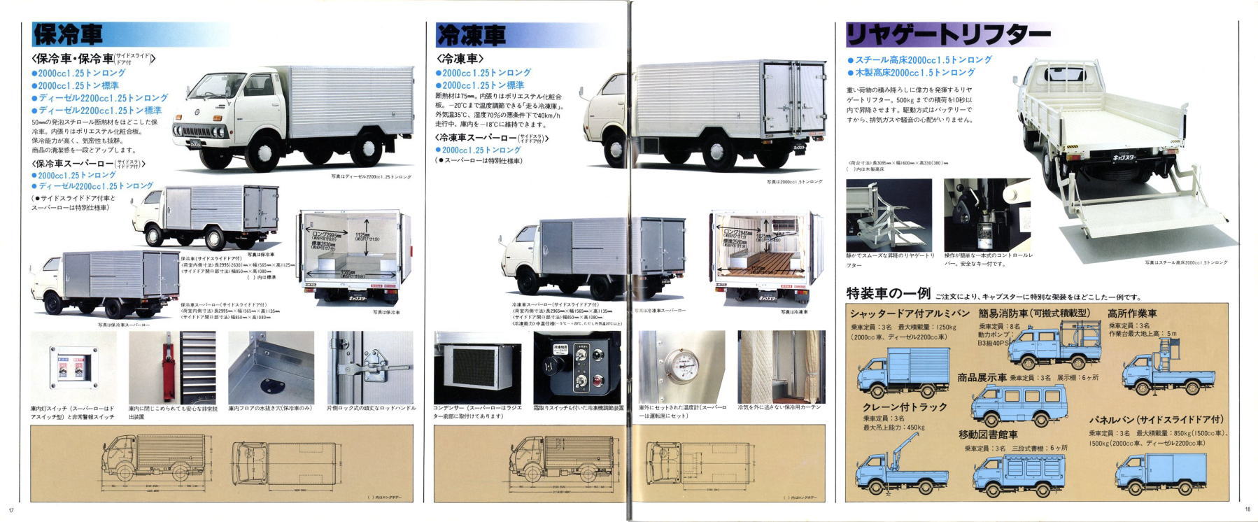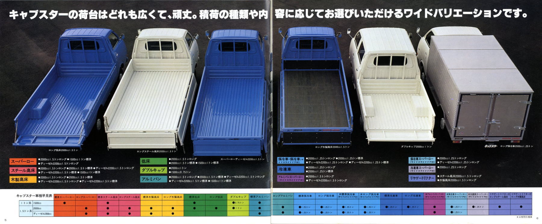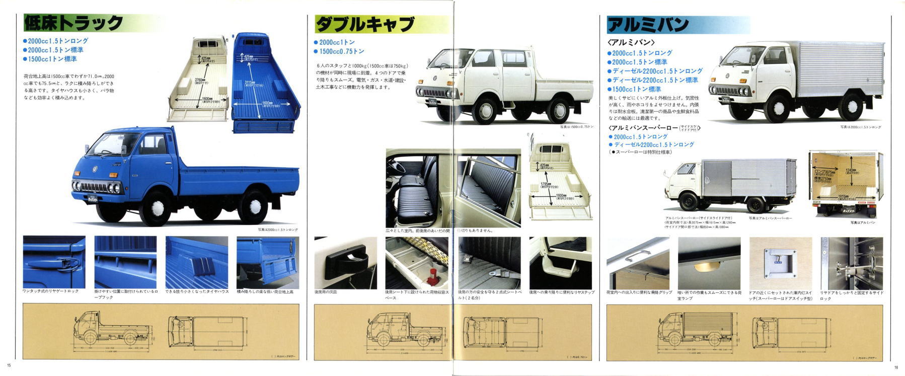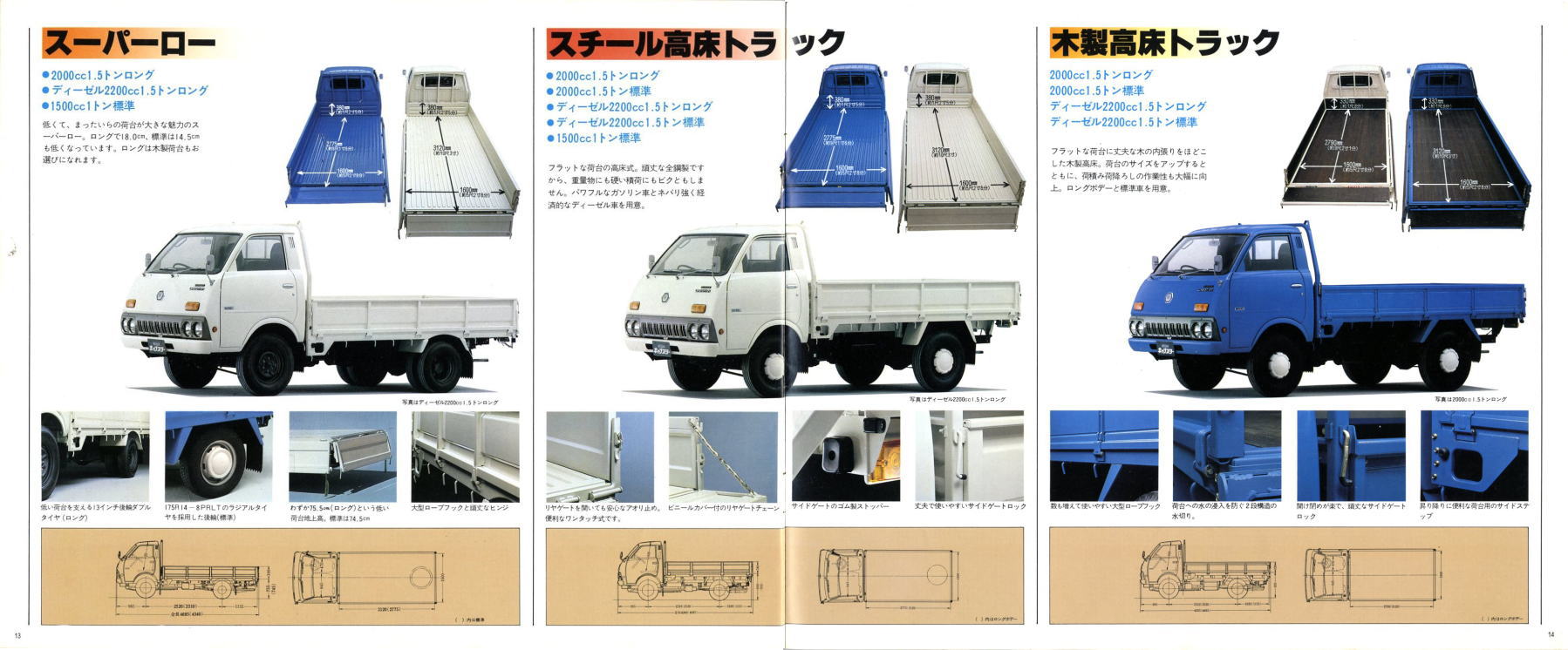 1976年に日産から発売された小型トラック、2代目キャブスター(F20型)です。このカタログは1978年に1トン積みスーパーローが追加されたときのもの。マツダのボンゴがこのクラスで小径ダブルタイヤの“まったいら”を設定してから、各社ぞくぞくと同様の“まったいら”を設定していきました。このキャブスターのカタログ、平仮名で“まったいら”と書いてあるあたり、完全にボンゴをパクっていますね。