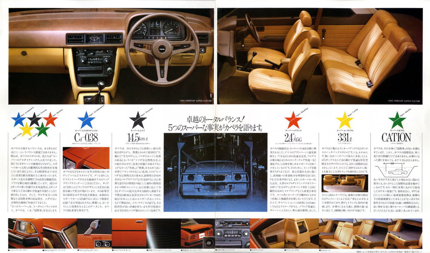 当時のマツダのラインナップは武田鉄矢さんが映画で乗られていたファミリア、サバンナRX-7、縦2灯ヘッドランプのルーチェ・レガート、そしてこのカペラ等でした。現在のように全てがマツダ顔で統一されているラインナップとは正反対で、それぞれがまったく異なる雰囲気を持っていました。似たような顔で大きさだけ異なるラインナップも考え物ですが、あまりにも方向性がバラバラのラインナップもちょっと考え物ですね。