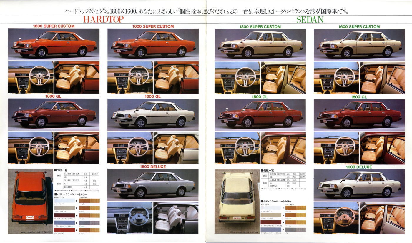 今あらためてこのカタログを見ると、2ドアハードトップはなかなかカッコいいですね。しかし4ドアセダンについての印象は残念ながら当時のままです。今見ても条件反射のように心の中で“外れ”と呟いてしまいます。同じ顔をしていても2ドアと4ドアではずいぶん印象が異なるものですね。