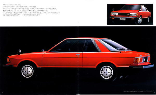 1979年に日産から発売された6代目ブルーバード(910型)です。ブルーバードの黄金期とも言えるほどの大ヒット作で、ブルーバードという車名を聞いたら真っ赤な910型SSSが頭に浮かぶ方も多いことと思います。昔ミスターこと長嶋茂雄氏が立教大学時代に「赤鉛筆の色は何色?」と問われ、「青」と答えたとのエピソードを聞いたことがありますが、この910型については、「青い鳥は何色?」と問われたら「赤」と答えてしまうぐらい、910型ブルの真っ赤なSSSは強い印象が残っていますね。