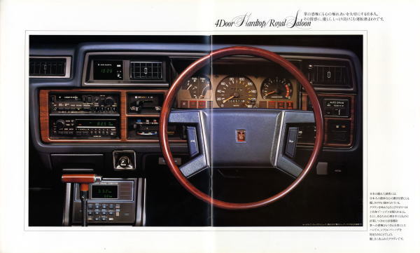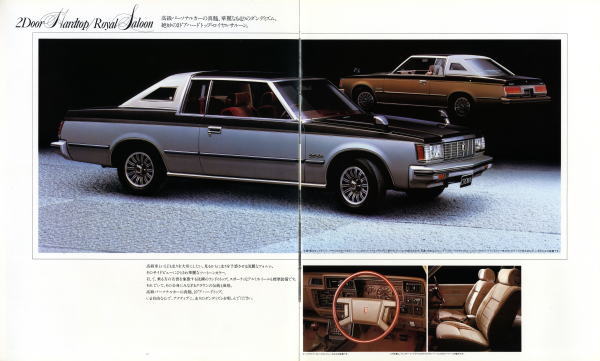 1979年にトヨタから発売された6代目クラウン(MS112/MS110型)です。同じ年にフルモデルチェンジされた430セドリック同様、直線基調のすっきりしたスタイルですね。典型的な「いかにもクラウン」のデザインです。 ところで、6枚目までの画像と、7枚目以降の画像、ちょっと見難いかもしれませんが、何か気づくことがありませんか?6枚目までは2.8リッター、7枚目以降は2リッターです。外見からは排気量など分かりませんが、バンパーが異なるんです。 今でこそ3ナンバーボディは一般的ですが、当時はまだ5ナンバー枠の呪縛がありました。排気量が2リッターを超えるクルマでも、3ナンバー専用ボディなどもともと作ってありませんから、バンパーをでかくして3ナンバーサイズの車体にしていたのです。今見るとかなり不自然なバンパーですよね。 この慣習は後にシーマが大ヒットするまで続いていきます。 さて、ネットで面白い記事を拝見しました。 高級車ブームにご用心 との記事で、証券会社のエコノミストが書かれた記事です。記事によると、「日経MJ」誌のヒット商品番付から面白いことが分かるそうです。 第1次高級車ブーム ・88年 「3ナンバー車」(東前頭) ・89年 「超高級国産車」(東前頭) ・90年 「スポーツカー『NSX』」(西前頭) 第2次高級車ブーム ・04年 「高級セダン」(東小結) ・05年 「レクサス」(東前頭) ・06年 「レクサスLS460」(東前頭) ・07年 「ニッサンGTR」(西前頭) どちらもこの直後に景気が後退局面に入ったとのこと。 徐々に高級車ブームになっていき、究極のスーパーカーが出た後にズドン!というパターンですね。歴史は繰り返すといいますが、ここまで同じパターンだとちょっと気持ち悪いですね。 クラウン・セダン2800ロイヤルサルーン(MS112型) 全長×全幅×全高 : 4860×1715×1435mm ホイールベース : 2690mm 車両重量 : 1490kg エンジン : 直6OHC 2759cc 145PS ![]() (画像クリックで拡大) ![]() (画像クリックで拡大) ![]() (画像クリックで拡大) ![]() (画像クリックで拡大) ![]() (画像クリックで拡大) ![]() (画像クリックで拡大) ![]() (画像クリックで拡大) ![]() (画像クリックで拡大) ![]() (画像クリックで拡大) ![]() (画像クリックで拡大) ![]() (画像クリックで拡大) ![]() (画像クリックで拡大) ![]() (画像クリックで拡大) ![]() (画像クリックで拡大) |
