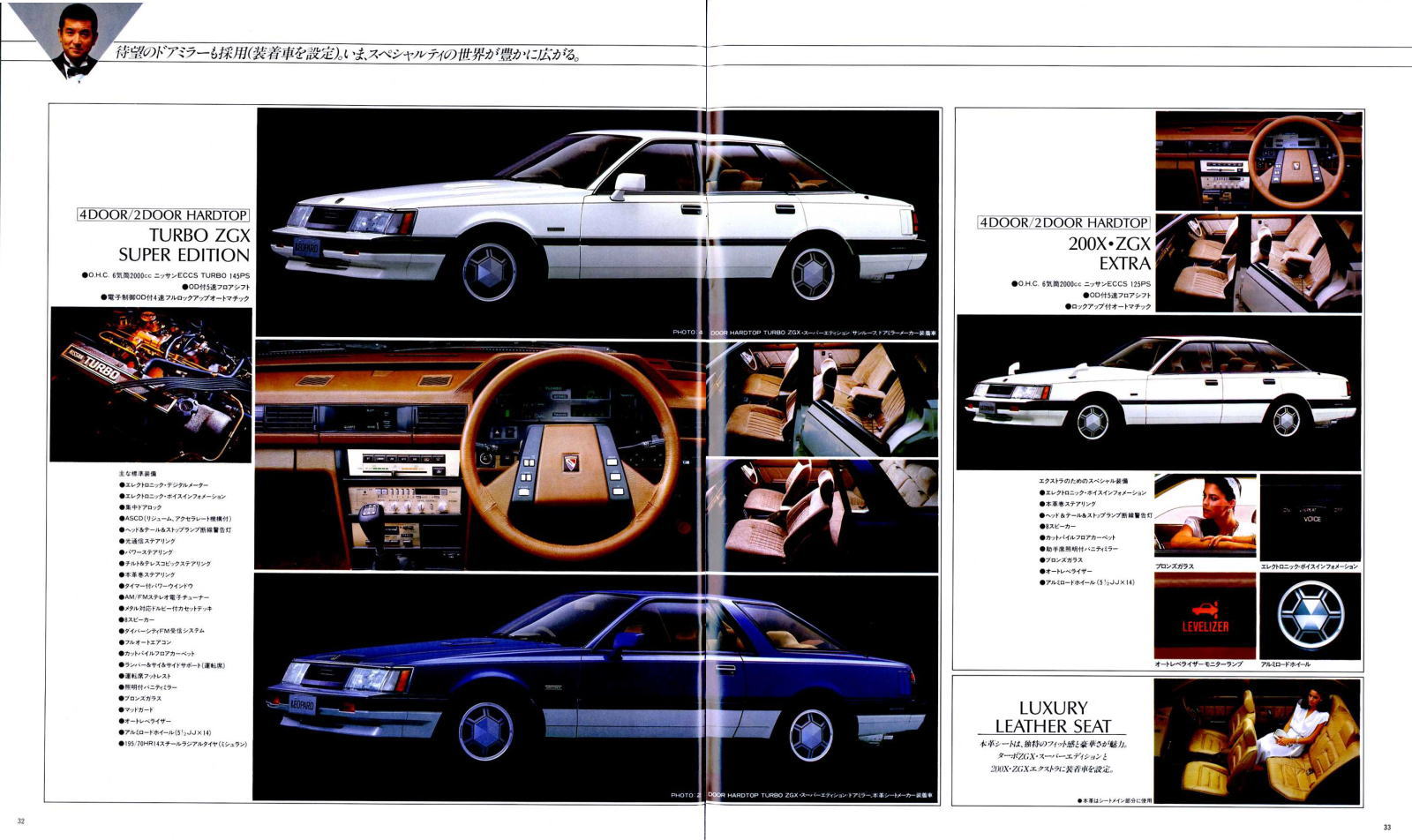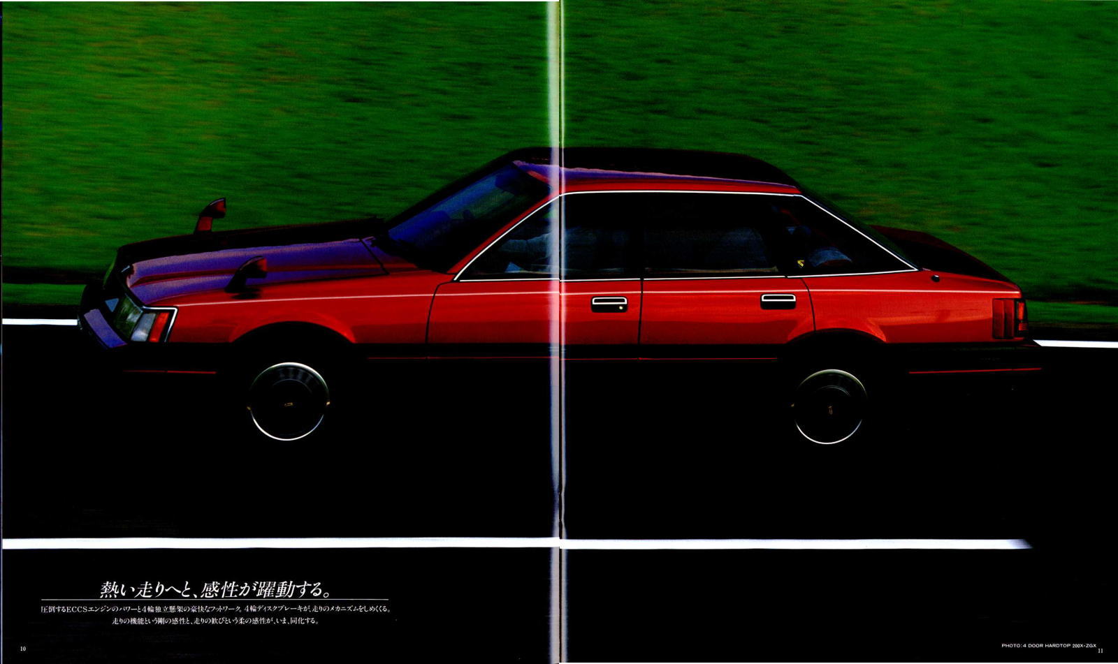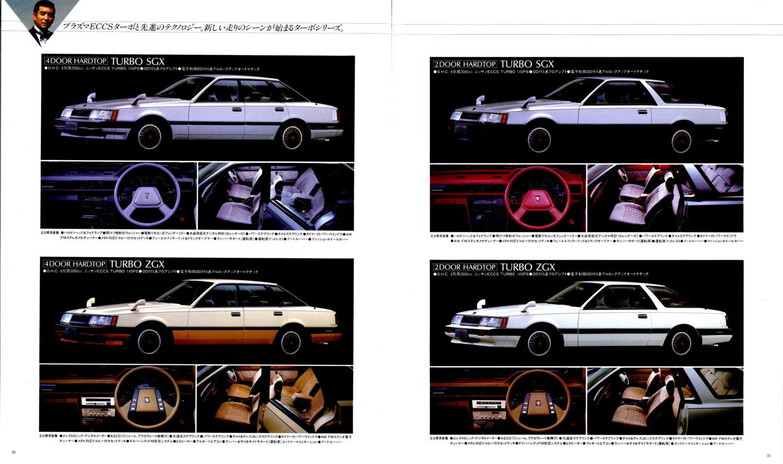 1980年に日産から発売された初代レパード(F30型)です。このカタログは83年に発行されたもので、直6・2.8Lがラインナップから外され、V6・3Lターボが追加される前の時期にあたり、3ナンバーグレードが存在しないちょっと中途半端なものです。ちょうどライバルであるソアラにその差をどんどん広げられていた時期のものですね。