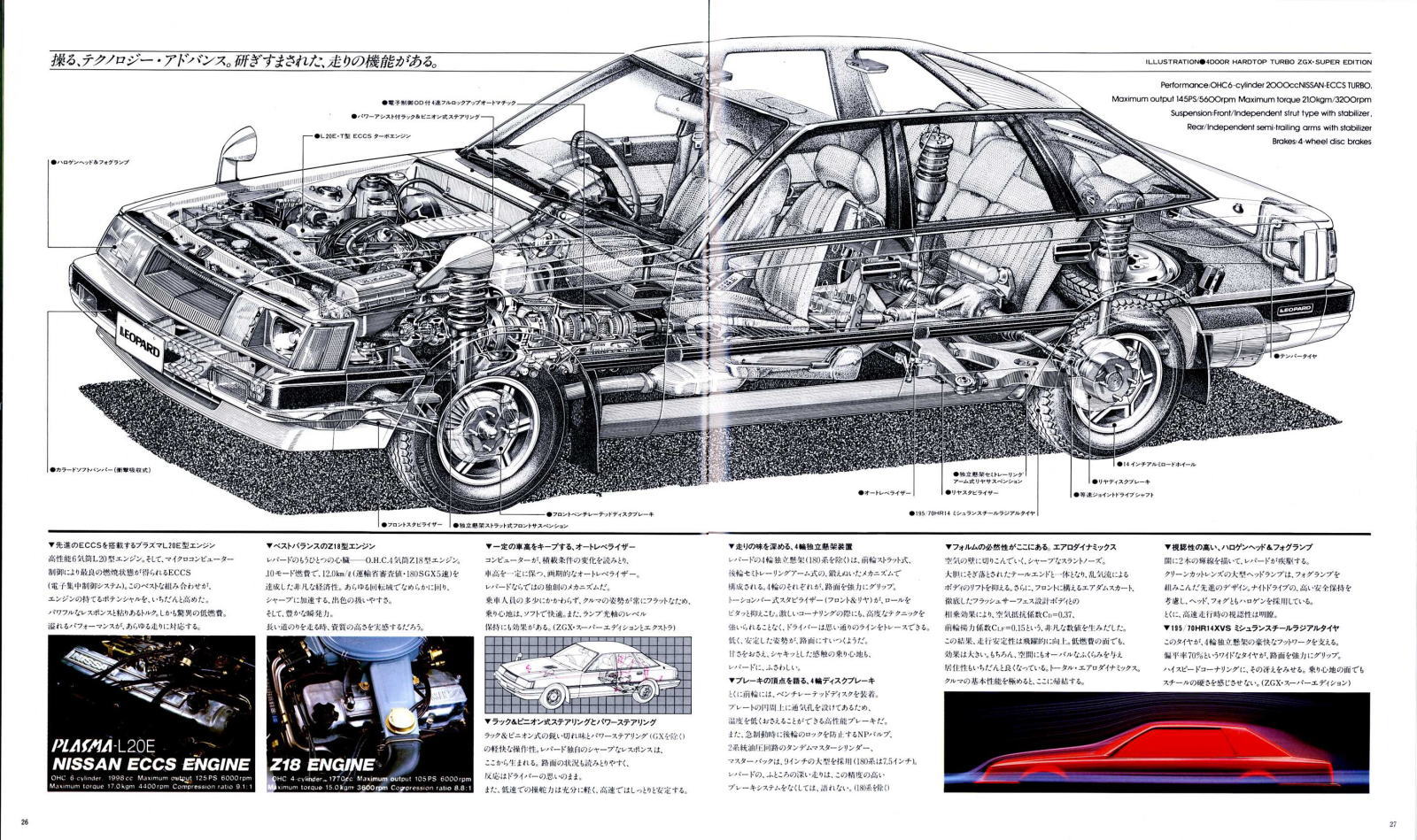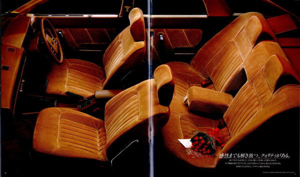 ところで、「高級スペシャリティーカー」であるこのレパード、このカタログ中の最廉価グレードである180GXは手元の価格表によると1,548,000円、驚くことにエアコンもパワーステアリングもパワーウインドウも付いていません。実に私好みのグレードですが、レパードに限って言えば、そのようなグレードは用意しないほうが良かったのかもしれませんね。