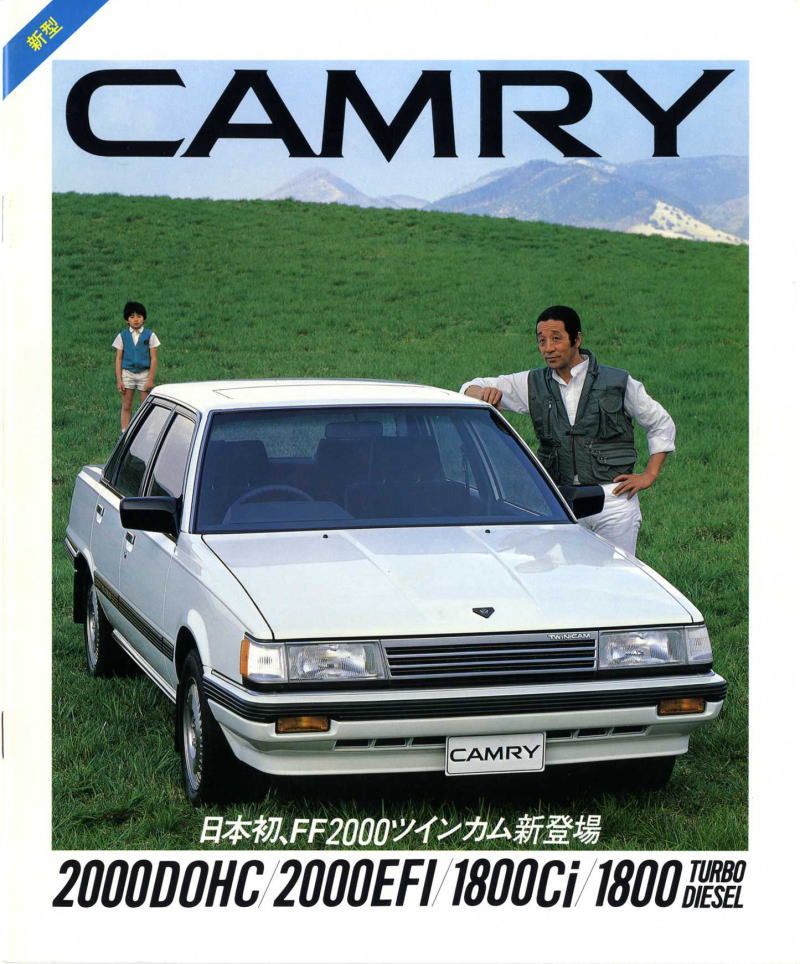 1982年にトヨタから発売された2代目カムリ(SV10/11/12型)です。初代は1980年に登場したセリカカムリでしたが、あちらはカリーナの姉妹車でFR車でした。現在世界中で販売されているFFサルーンの世界戦略車としての実質的な初代は、型式からも明らかなようにこの2代目カムリですね。