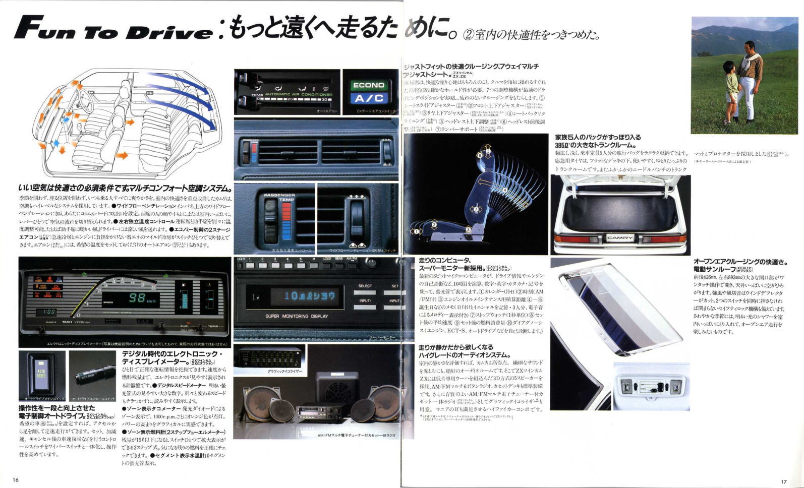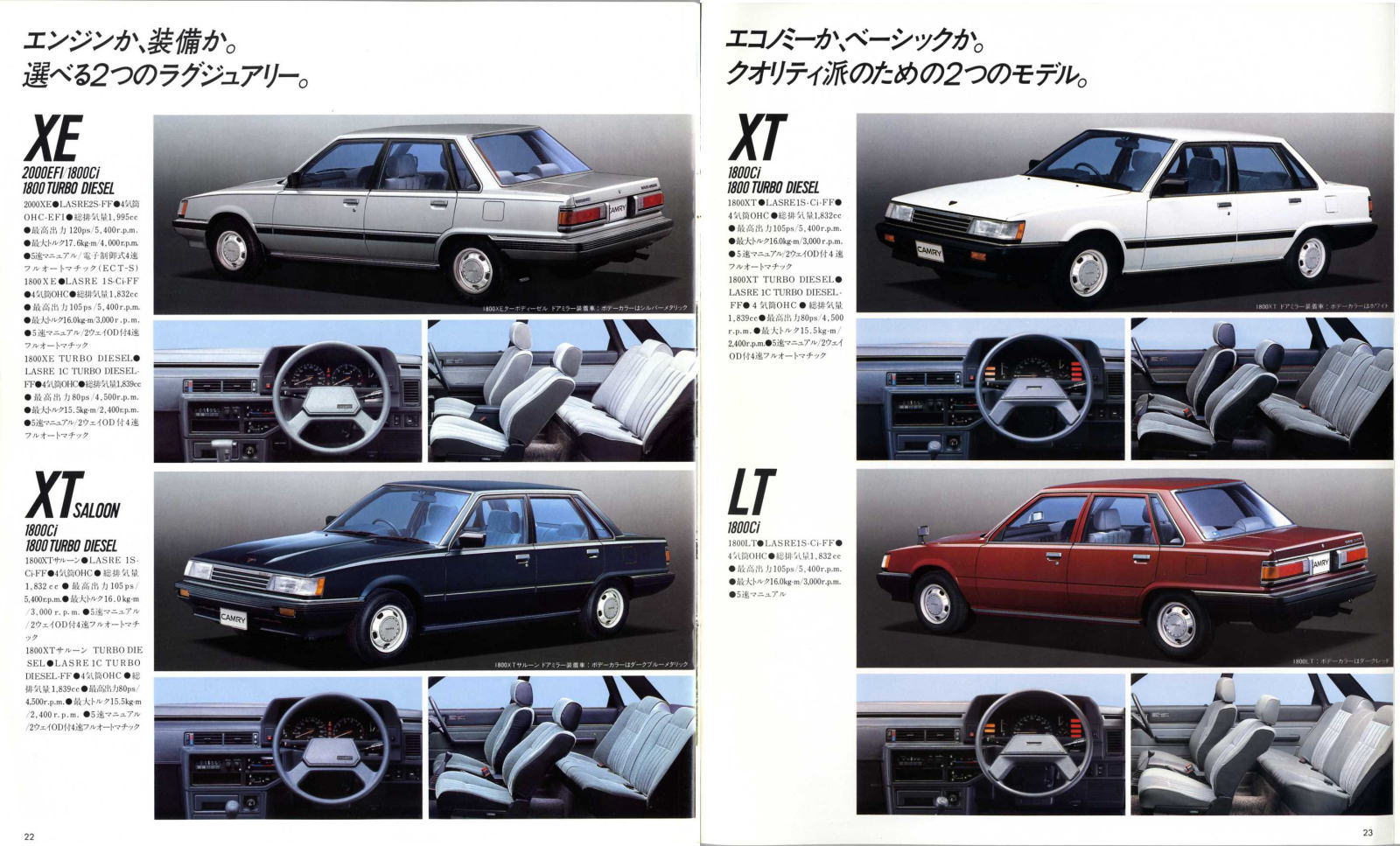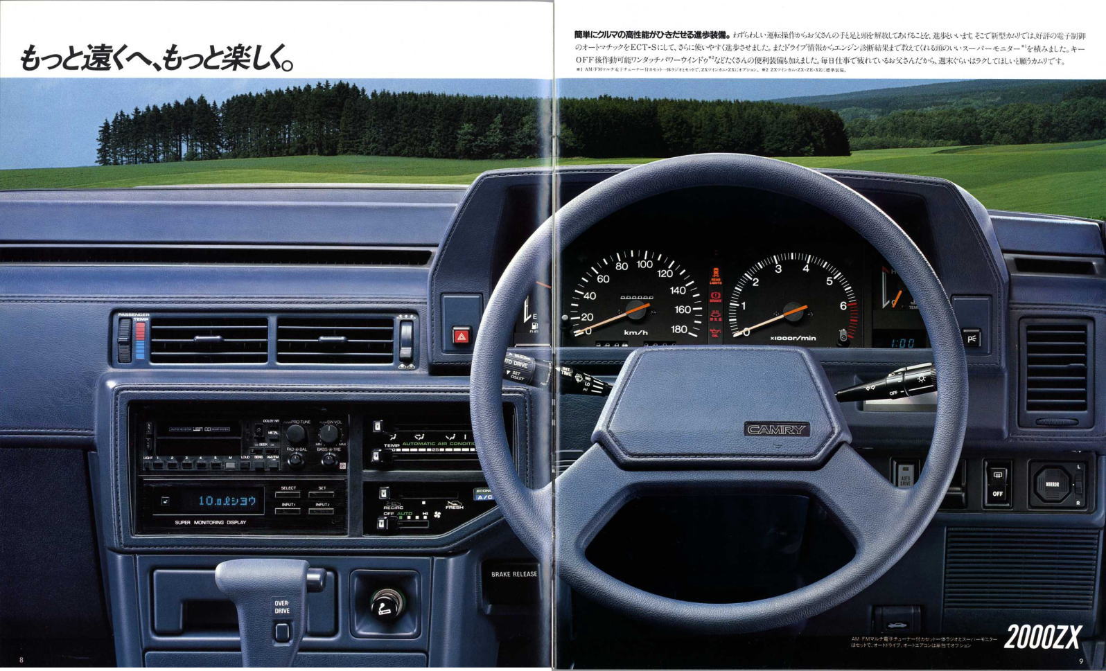 さて、この2代目カムリ、カタログでも『新しい、大きなカムリ』、『長距離クルージングサルーン 大きなカムリ』と紹介されているように、そのコンセプトがとても明快なクルマです。カムリは途中で2代ほど国内専用車が用意された時期がありましたが、グローバルモデルとしてのカムリはずっとこの路線で進んできました。