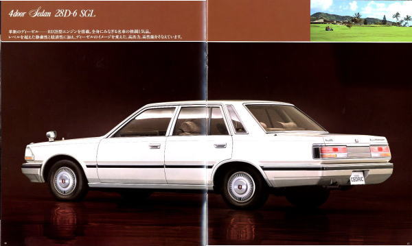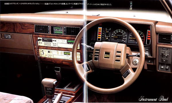 さてエンジンに大きな変更があったとはいえ、このデザインはきわめて保守的な「ジャパニーズ高級車」ですね。プレジデントとセンチュリーを別格とすれば、セドリックとクラウンはいつの時代も「ジャパニーズ高級車」トップの地位を争ってきました。ほとんどクラウンが勝っていましたが、日産セドリックとトヨタ・クラウンの頂点ライバル関係は誰もが認めるところです。「いつかはクラウン」「いつかはセドリック」との思いを胸に秘め仕事に励んだ殿方もきっと大勢おられたことでしょう。