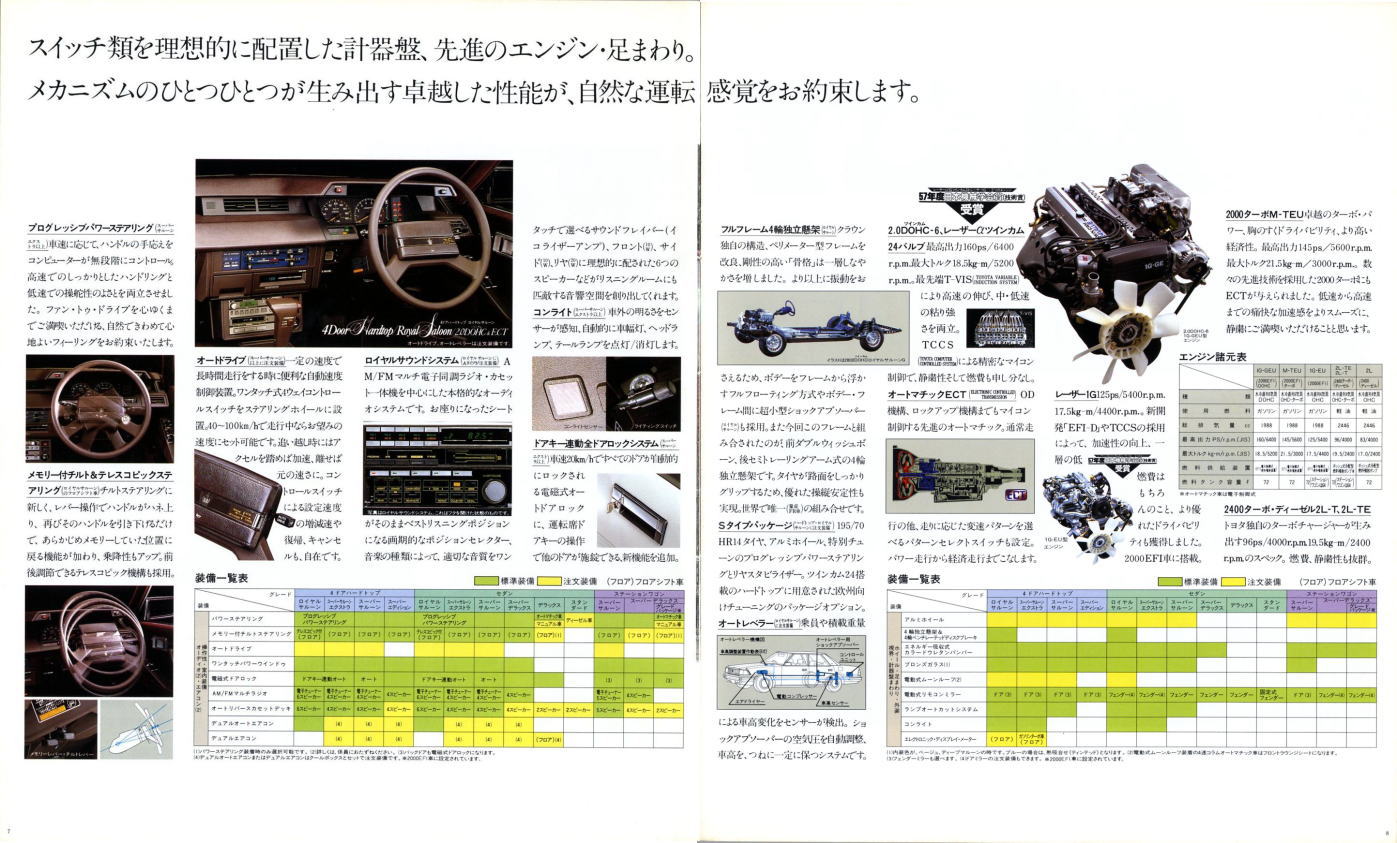当時のクラウン2000シリーズの価格帯は230〜300万円程度。クラウンの3リッタークラスでは400万円弱というグレードもありましたので、やっぱり高級車ですね。トヨタではそれより上には570万円のセンチュリーがあるだけでした。
