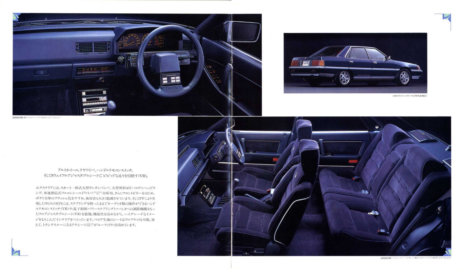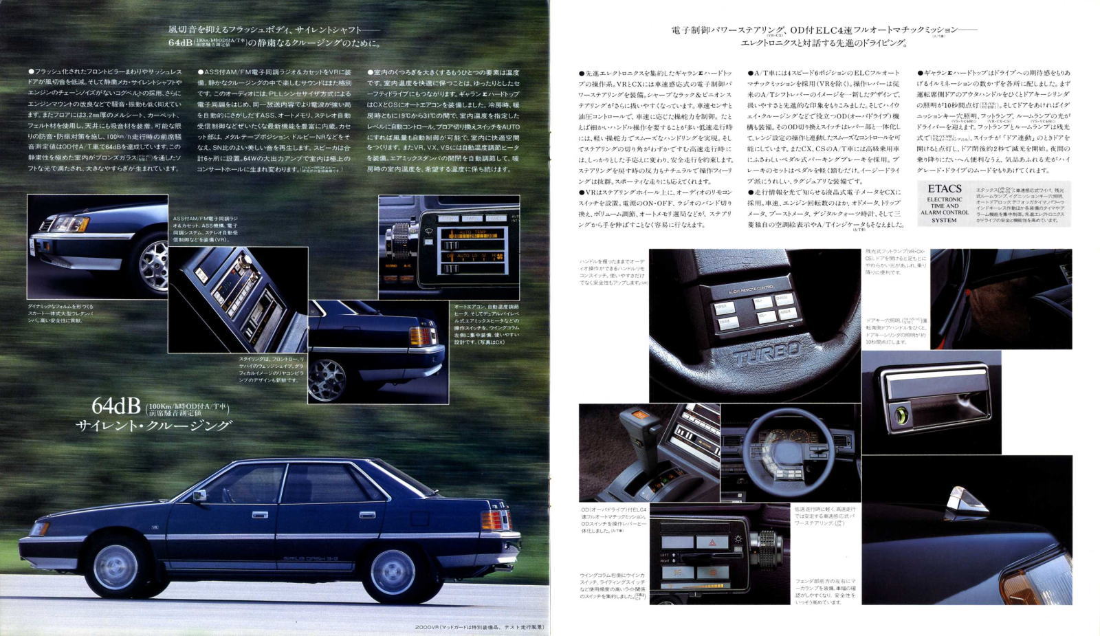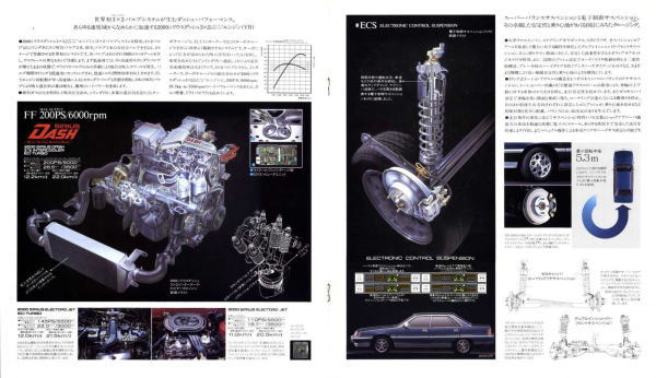 確かに部分ごとに見るととても魅力的です。当時のFF車としては最大のボディサイズ、そして最強クラスの200PSターボエンジンを搭載し(当時の鉄仮面スカイラインターボが205PS)、ソアラに匹敵するような豪華な内装とエレクトロニクス装備等々・・・。とはいえ、全体として見るとなぜか前後のオーバーハングが異様に長くてアンバランスなクルマ見えてしまうんですよね。