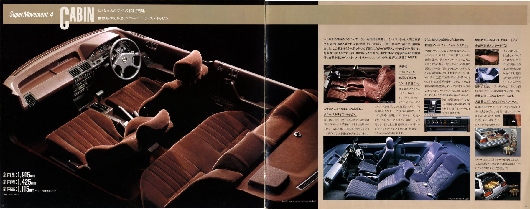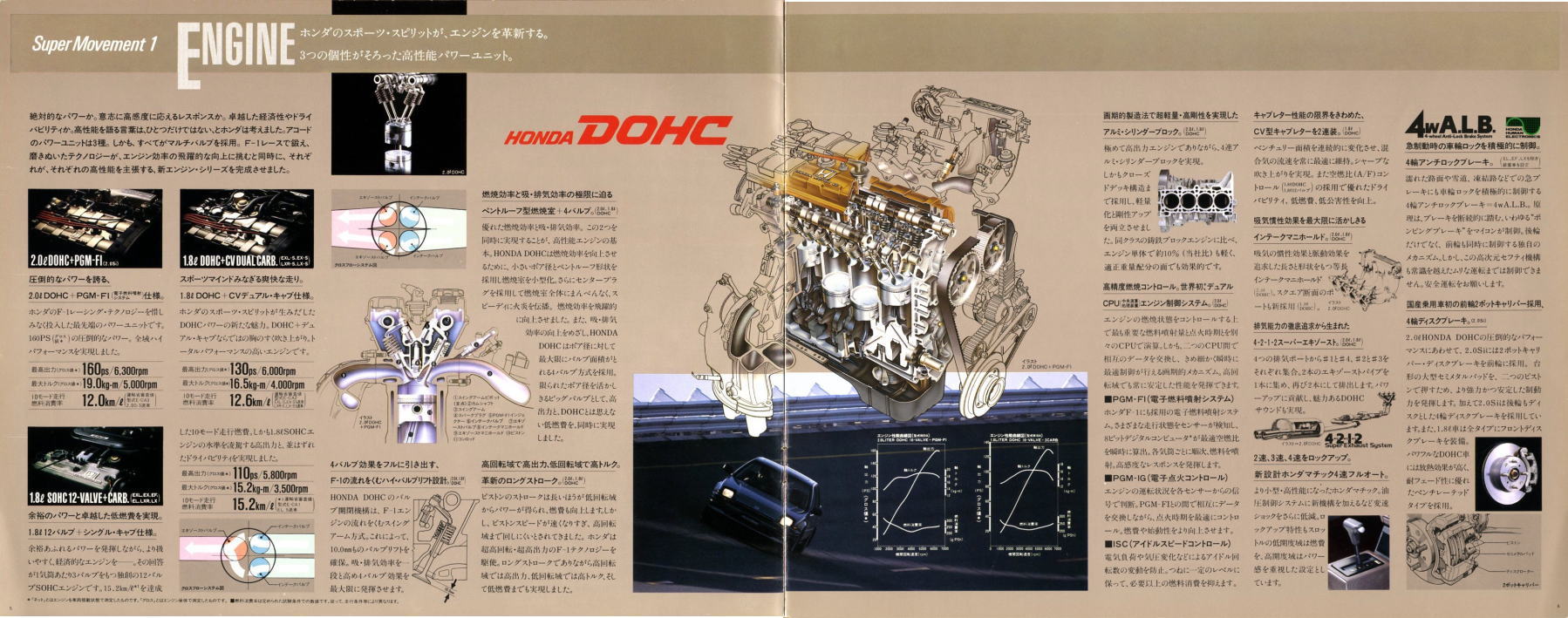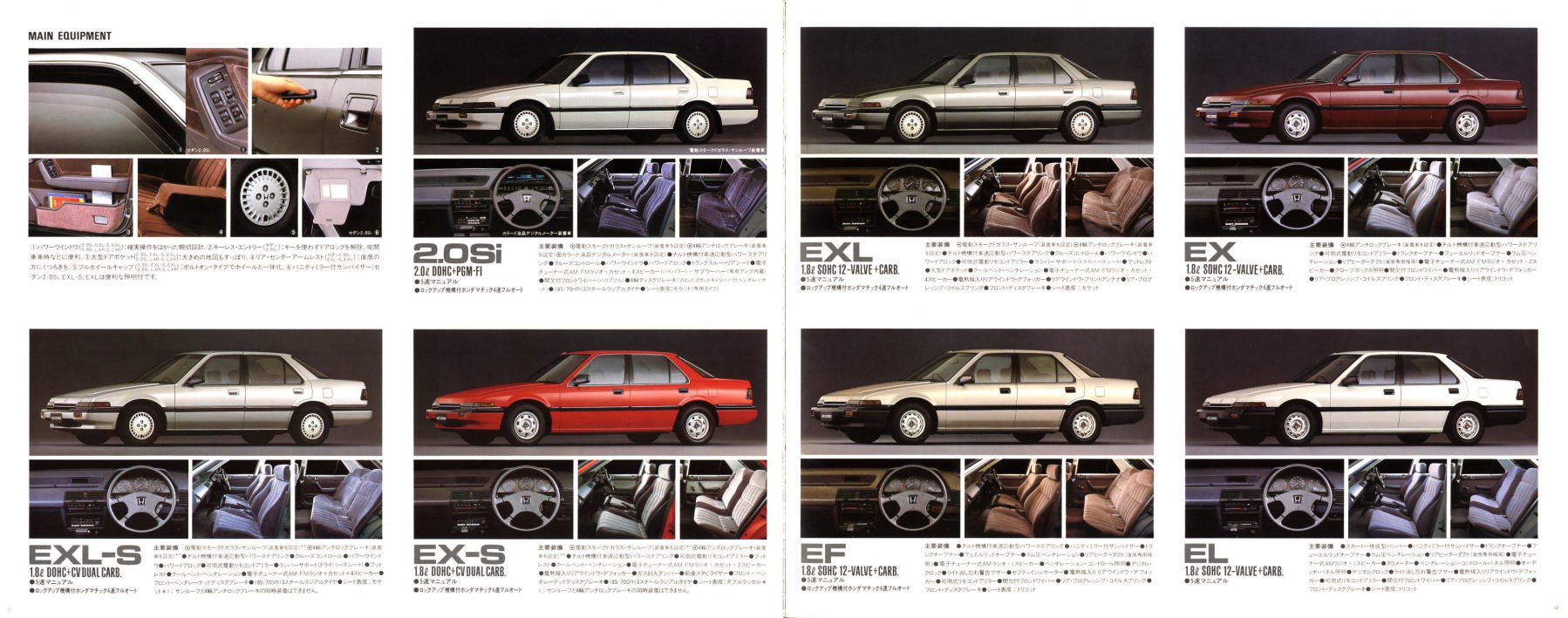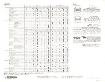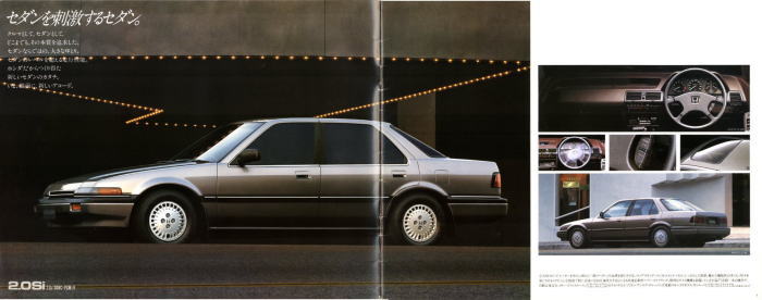 さて、この3代目アコード、当時のホンダらしさがとてもよく感じられる素晴らしいクルマでした。DOHCエンジンの説明では“ホンダのF-1レーシング・テクノロジーを惜しみなく投入した最先端のパワーユニットです”と解説され、FF車世界初となる4輪ダブルウイッシュボーン・サスペンションの説明では、“F-1の脚として、他を圧する潜在能力を秘めながら、量産車では至難とされていたメカニズムがいま、アコードに実現。”と解説されています。当時のテレビCMでもDOHCと4輪ダブルウイッシュボーンがかなり強調されていましたから、ホンダとしてはF-1で培ったこの2点が3代目アコードの大きなセールスポイントだったんでしょうね。とはいえ当時、4輪ダブルウイッシュボーン・サスペンションという言葉をCMで見て、どの程度の視聴者がそれをセールスポイントだと思っていたのかは疑問ですが・・・。