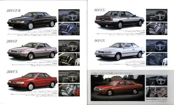 コロナには代々「コロナハードトップ」としてスポーティモデルが設定されていました。時代の流れでFF化が進む中、コロナの名を冠したスポーティモデルで初のFF車となったのがこのコロナクーペです。本来ならコロナクーペがコロナのスポーティグレードを後々まで引き継いでいく予定でしたが、販売的にちょっと失敗してしまったために、これ以降、コロナは購入者平均年齢が非常に高い車になってしまいました。現在でもプレミオはオヤジグルマの代表格ですね。