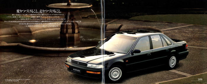 このアスコットのカタログの冒頭には「変わりつづけること。走りつづけること。」というキャッチコピーが書かれています。確かにホンダのラインナップは激しく変わりつづけ、会社として必死に走りつづけていることがとてもよくうかがえます。しかしながら昨今にわかに見かけるようになった「政治家として走りつづけるために、その基本方針が変わりつづけている人」が誰からも信頼されなくなるのと同様、変わってはいけないものまで変えてしまうとそのメーカーの存在感が薄くなってしまいますね。ホンダ、そして自動車メーカーに限らず、こんな時代だからこそそれぞれの企業にとっての「変わりつづけるべきことと変わってはいけないこと」をきっちり再確認する必要があるのかもしれませんね。