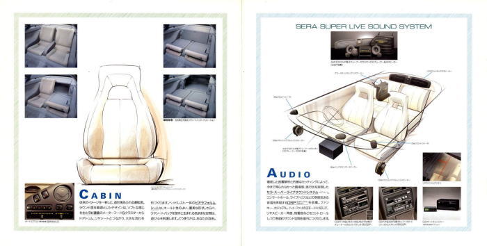 さて、このセラ、もちろん一番の特徴は憧れのスーパーカーでしかお目にかかることがないガルウィングドア及び、開放的な気分を味わえるガラストップが装備されていることですが、それ以外には特にセールスポイントがありません。先進的なオーディオシステムも特徴のひとつといえなくもありませんが、これはオプションなので、付けなければ高性能なオーディオ機能を堪能することはできません。