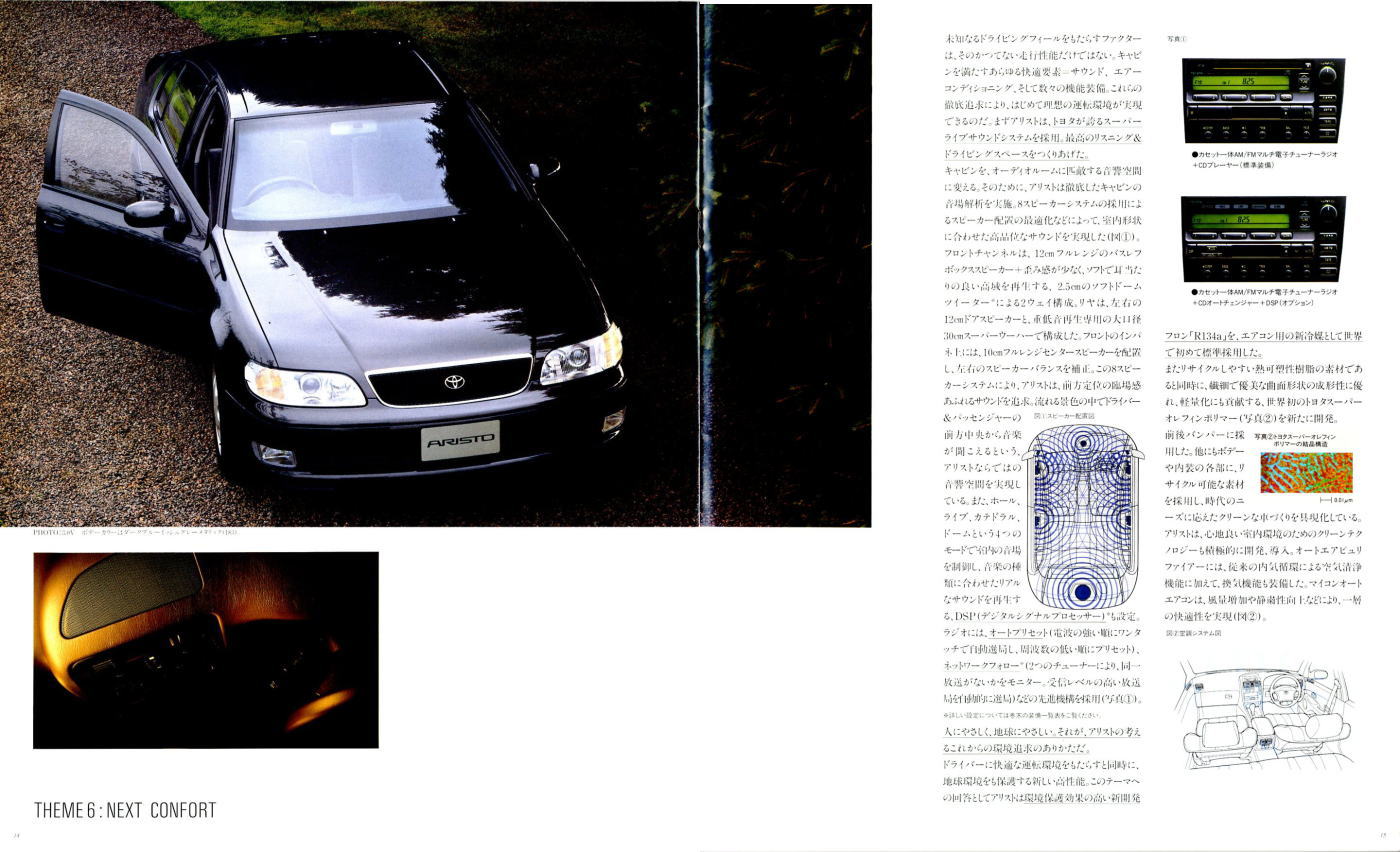 1988年に“きっと、新しいビッグ・カーの時代が来る”というキャッチコピーとともに日産シーマが発売され、ハイパワー高級セダンの口火が切られました。そしてこの初代アリストで“最速セダン”という現在に至る高級セダンの基礎が確立されました。その後の流れは皆様ご存知の通り、大排気量化、高級化、大型化がひたすら進められ、今やこのクラスの上級セダンはどれに乗ってもアクセルを踏みさえすれば暴力的な加速がとても簡単に、そして上品に味わえるようになりました。