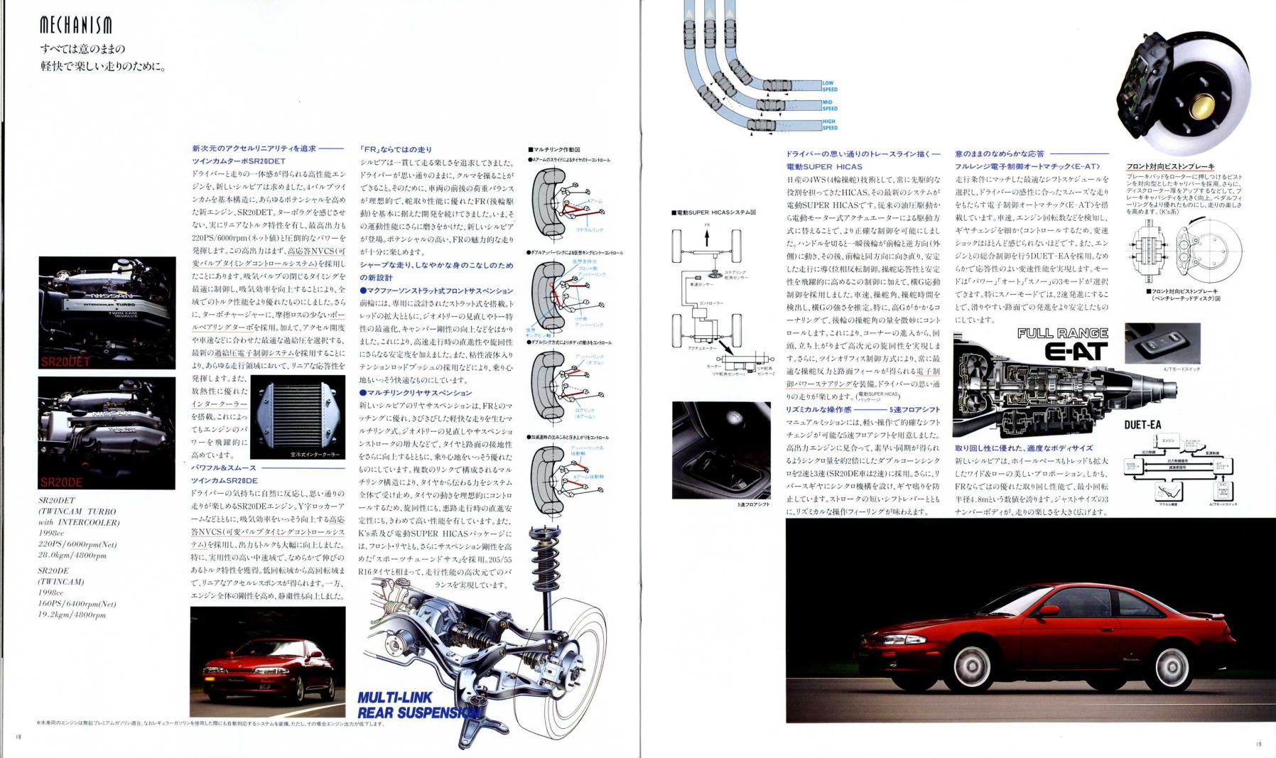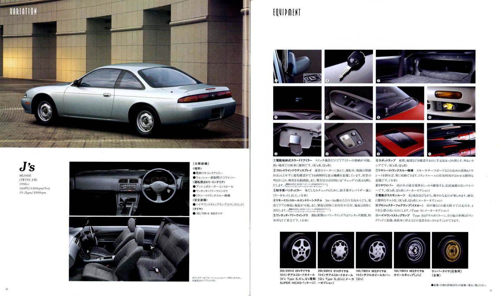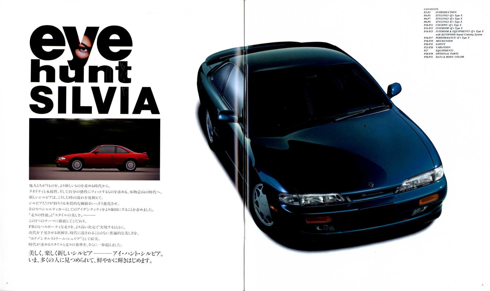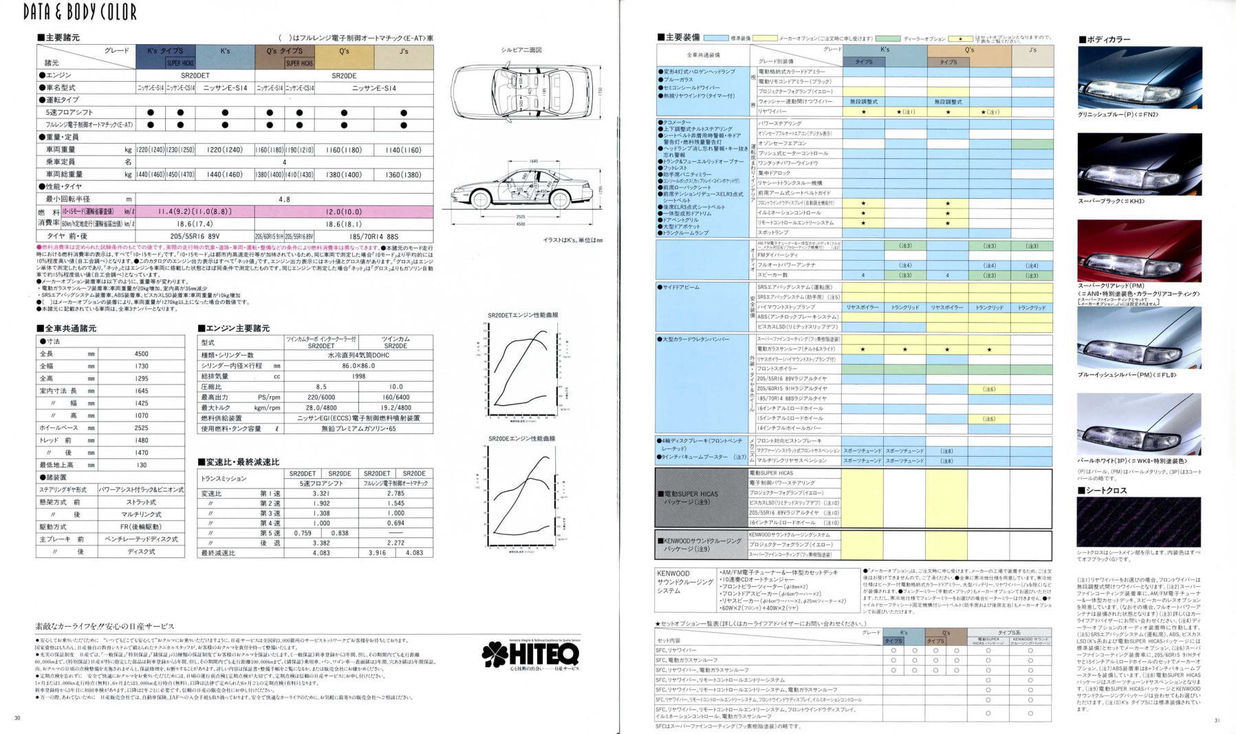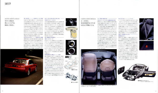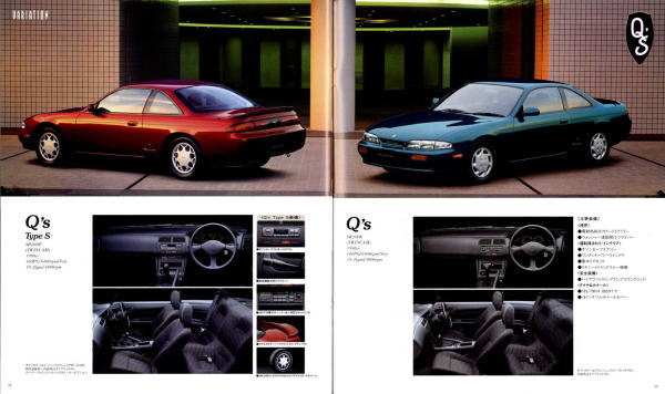 現在たまに街で見かけるS14型シルビアはちょっと下品な姿になっている車体が多く、ノーマルの美しさを保った姿はなかなかお目にかかることができませんが、改めてカタログ画像を見てみると、当時感じた「ぬべぇ〜」とした印象はあまりなく、結構落ち着いた大人のクーペに見えますね。特にリア部分は当時のローレルとそっくりなので、まるでローレルクーペのようにも感じられます。このS14型、デートカーはデートカーでも頭の中が煩悩いっぱいの若者御用達ではなく、子育ても一区切り付いた大人のデートに似合うクルマというのが本来の姿だったのかもしれませんね。
