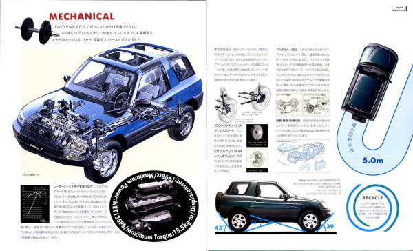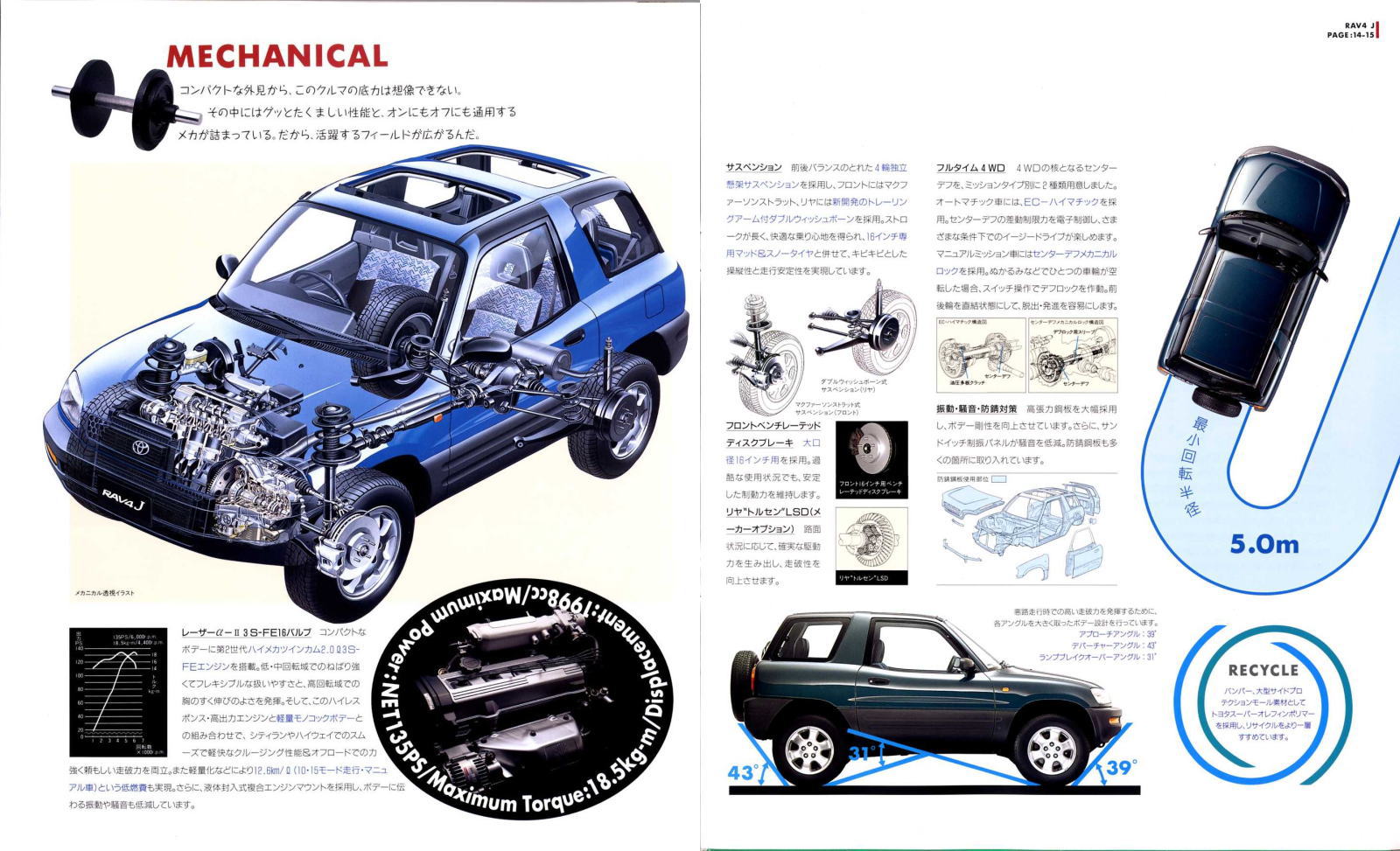さて、この初代RAV4、初めて実車を見たときには、まだ見慣れていないジャンルのクルマだったからか、なんだかチョロQのように見えてしまいました。同じようなショートボディでもパジェロだと立派な四駆に見えるのですが、このRAV4は愛らしいおもちゃのように見えてしまうんですよね。構造的には立派な4WDシステムが装備され、かなりのオフロード性能も持ち合わせていたようですが、愛嬌のある外見から、またキムタクさんがCMキャラクターを務められていたことも手伝っておしゃれなイメージが見事に浸透していきましたね。