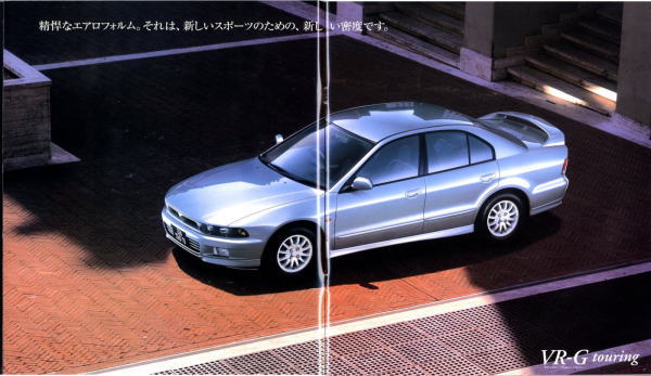 1996年に三菱から発売された8代目ギャラン(EA/EC型)です。1996年といえば、阪神淡路大震災の翌年です。このギャランは当時戦後最大の自然災害といわれていた阪神淡路大震災の翌年に、『先進の、その先へ。GDIギャラン』という、いかにも希望の持てるキャッチフレーズとともに鳴り物入りで登場し、1996年のカー・オブ・ザ・イヤーを獲得したクルマでした。