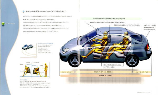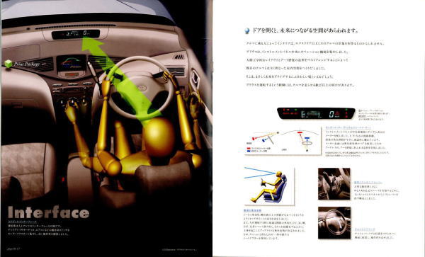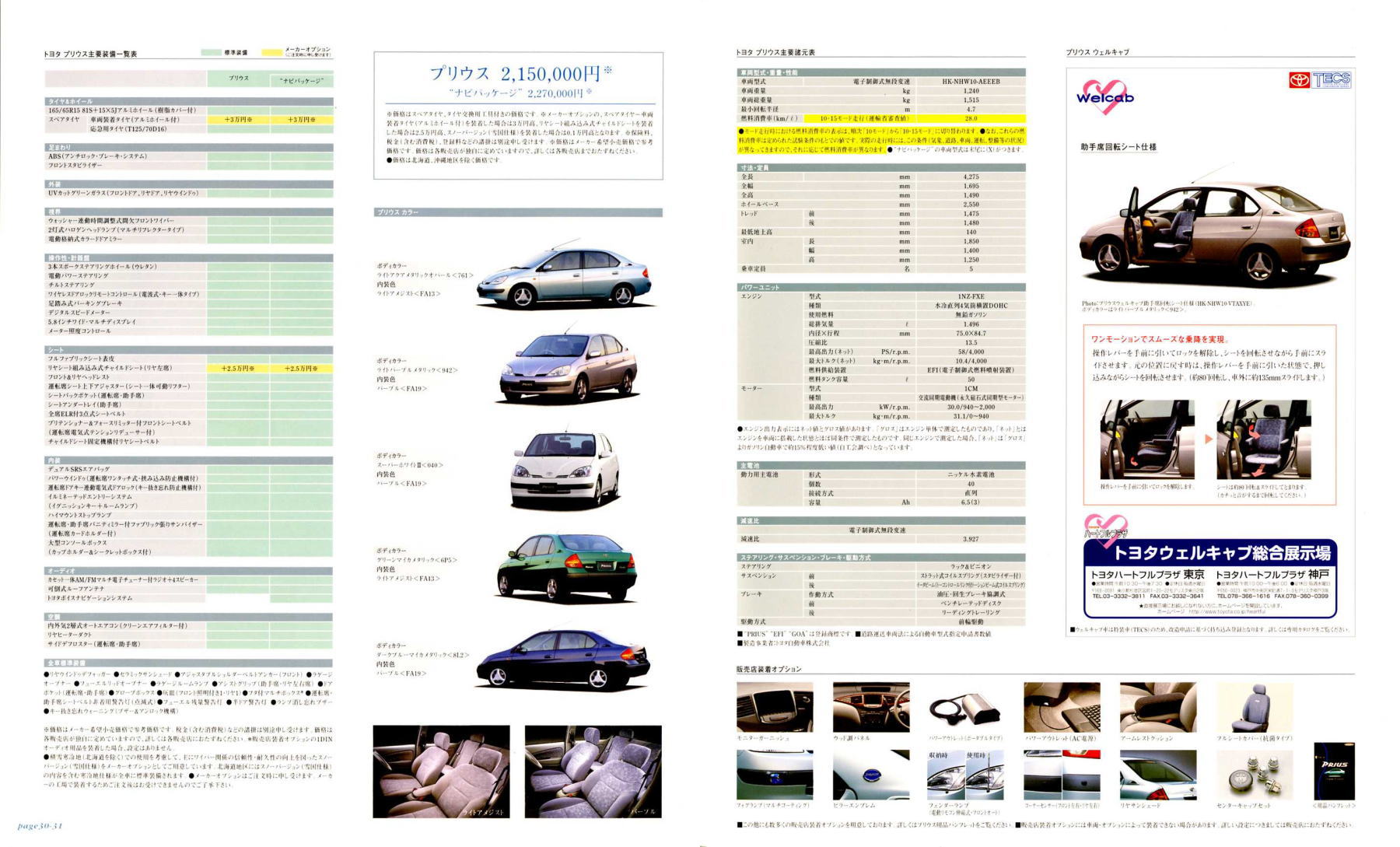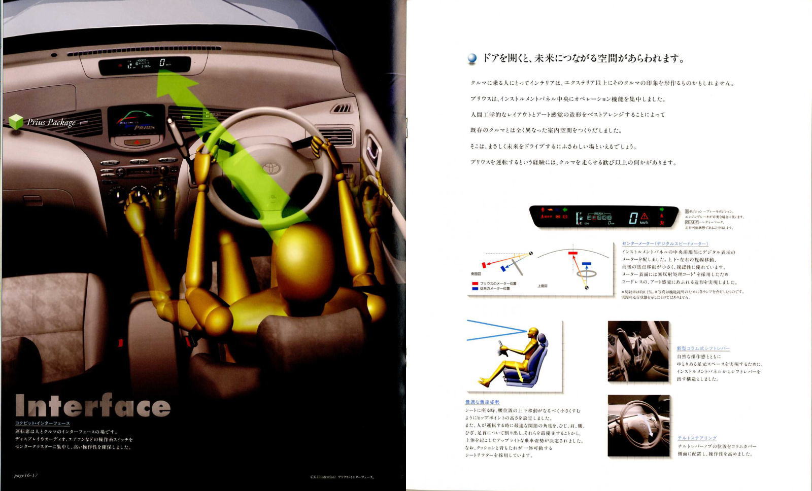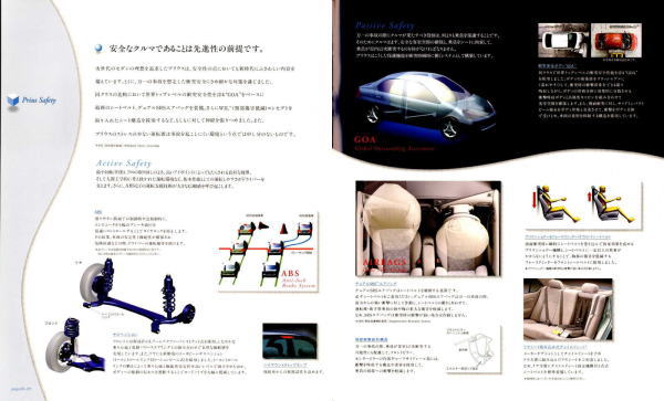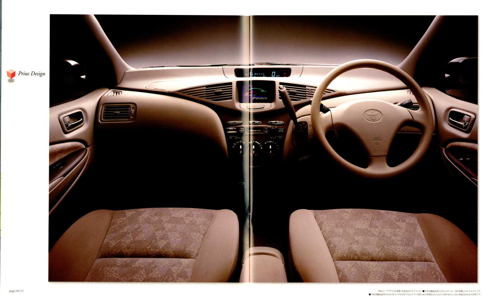 1997年にトヨタから発売された初代プリウス(NHW10型)です。皆様ご存知の通り、世界初の量産ハイブリット車で、構造もスタイルもインテリアも全てが当時の常識とは一線を画した「未来のクルマ」として、「21世紀に間にあいました」。当時、有名なハリウッドスターが自身の環境意識をアピールするためにプリウスを購入していたということでも話題になりましたね。