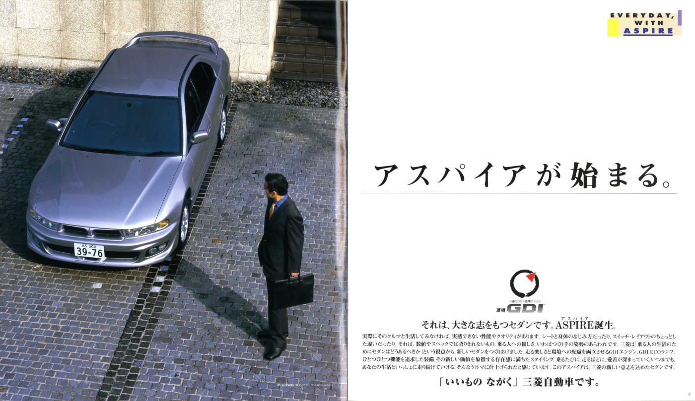 さて、このアスパイア、なんだか存在自体が現在の三菱自動車の姿を先取りしていたように感じられますね。カープラザ店という販売店があったので、その系列で中型セダンを販売するために名前の異なるギャランが投入され、カープラザ店がなくなったらアスパイアも消滅。