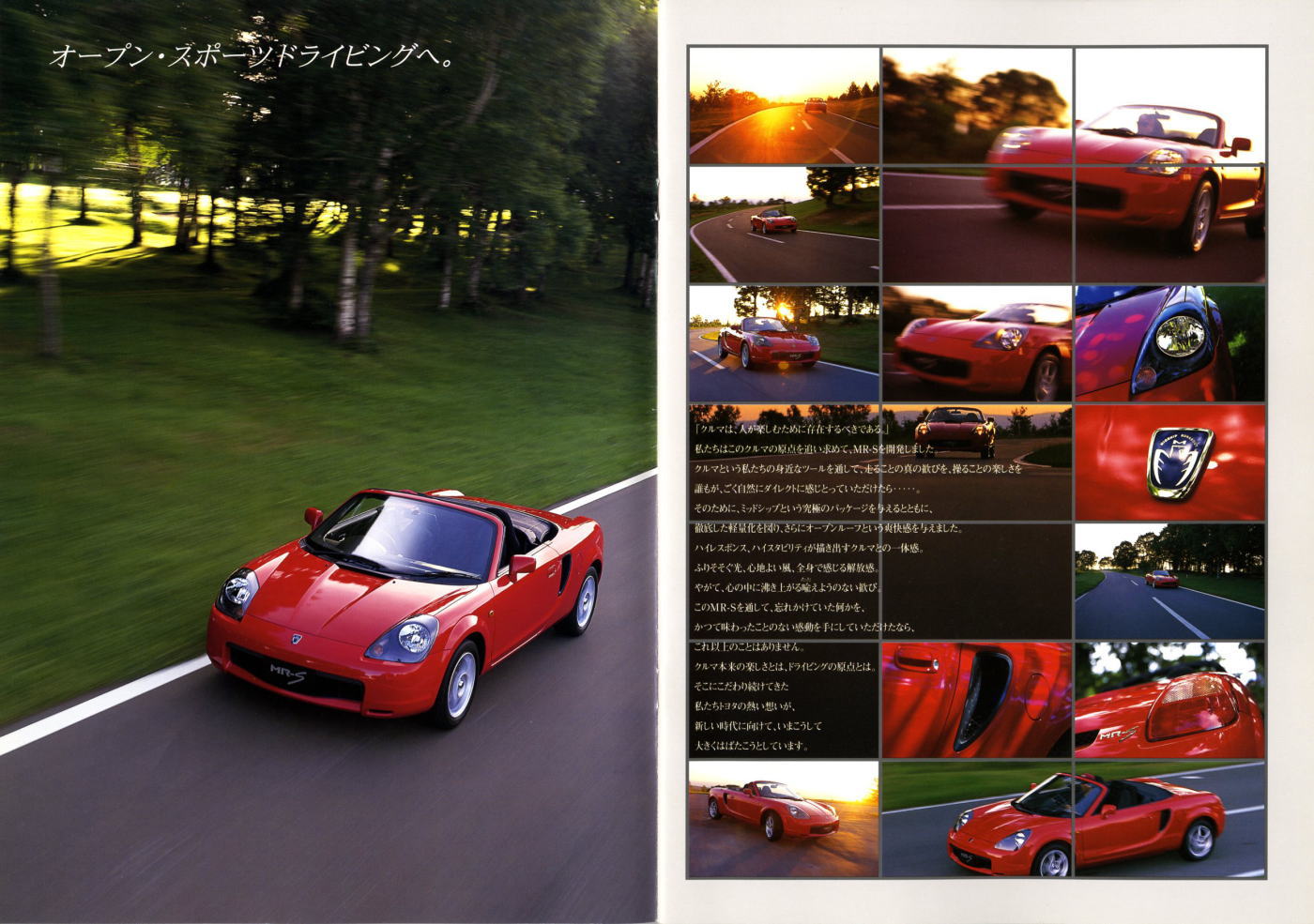 さて、このMR-S、発売当時、ネッツ店で行われていた“有料試乗”なるものを利用し、営業マンの同乗なしで遊んだ記憶があります。10年以上前のことなので細かなことは忘れてしまいましたが、確か5〜600円の料金で、30分か1時間(ちょっと記憶が曖昧です)自分の好きなコースを走ってよいという制度だったと思います。ごく短時間のレンタカーのような感じですね。なかなかよい制度だったんですが、今でもやっているんでしょうかね?なにぶんこの制度を利用したのはMR-Sが最初で最後、理由は単純明快、このMR-S以降、お金を払ってまでじっくり乗ってみたいと思ったトヨタ車がなかったからですけどね。